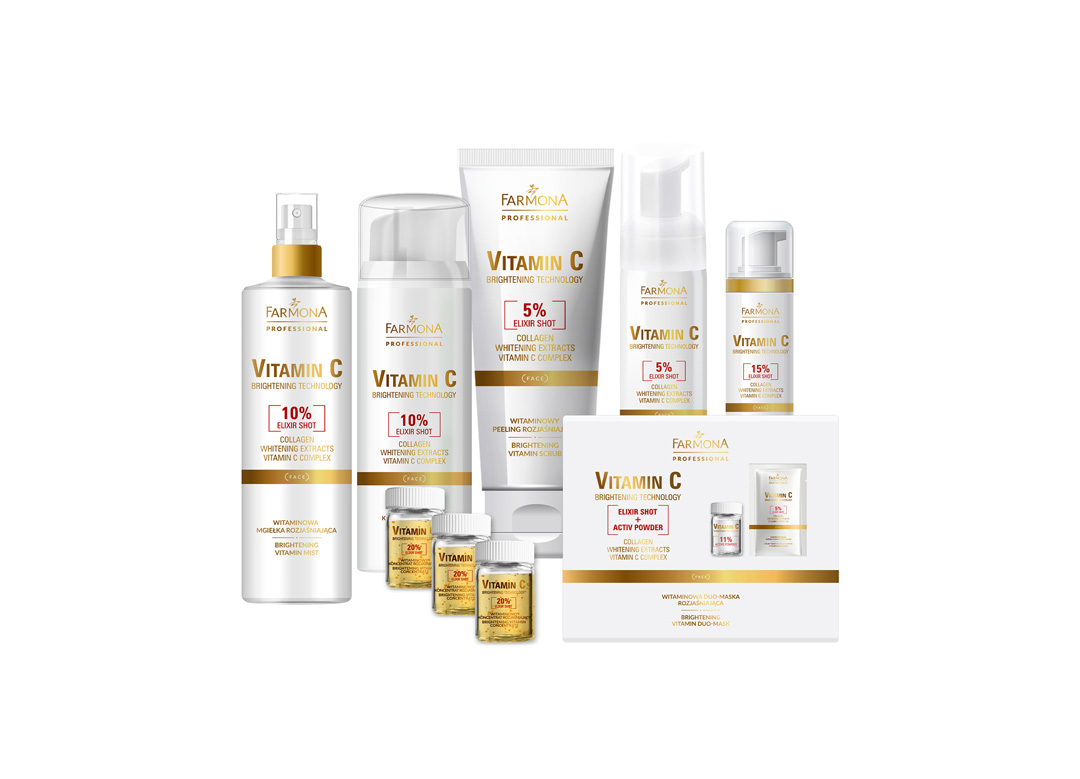 Profesjonalny zabieg rozjaśniający dla skóry szarej, zmęczonej, z nierównym kolorytem, przebarwieniami lub oznakami starzenia.Każdy produkt w linii został wzbogacony o specjalnie opracowany Elixirshot– mocno rozjaśniający i ujędrniający kompleks dwóch aktywnych form witaminy C, kolagenu i rozjaśniających ekstraktów roślinnych. Dzięki wysokoskoncentrowanym składnikom aktywnym zabieg natychmiastowo przywraca skórze blask, wyrównuje jej koloryt, rozświetla i rozjaśnia, a także widocznie redukuje oznaki starzenia.